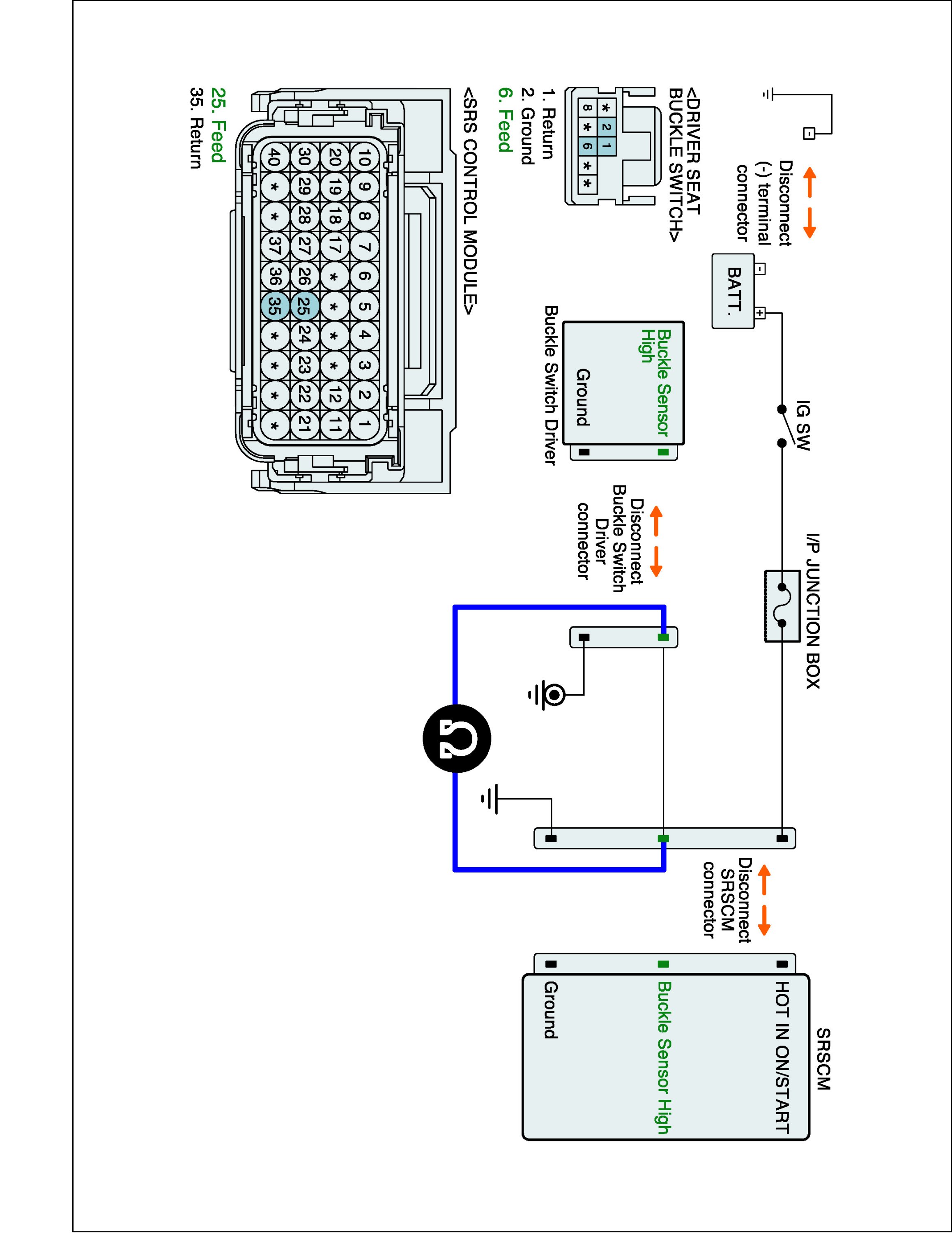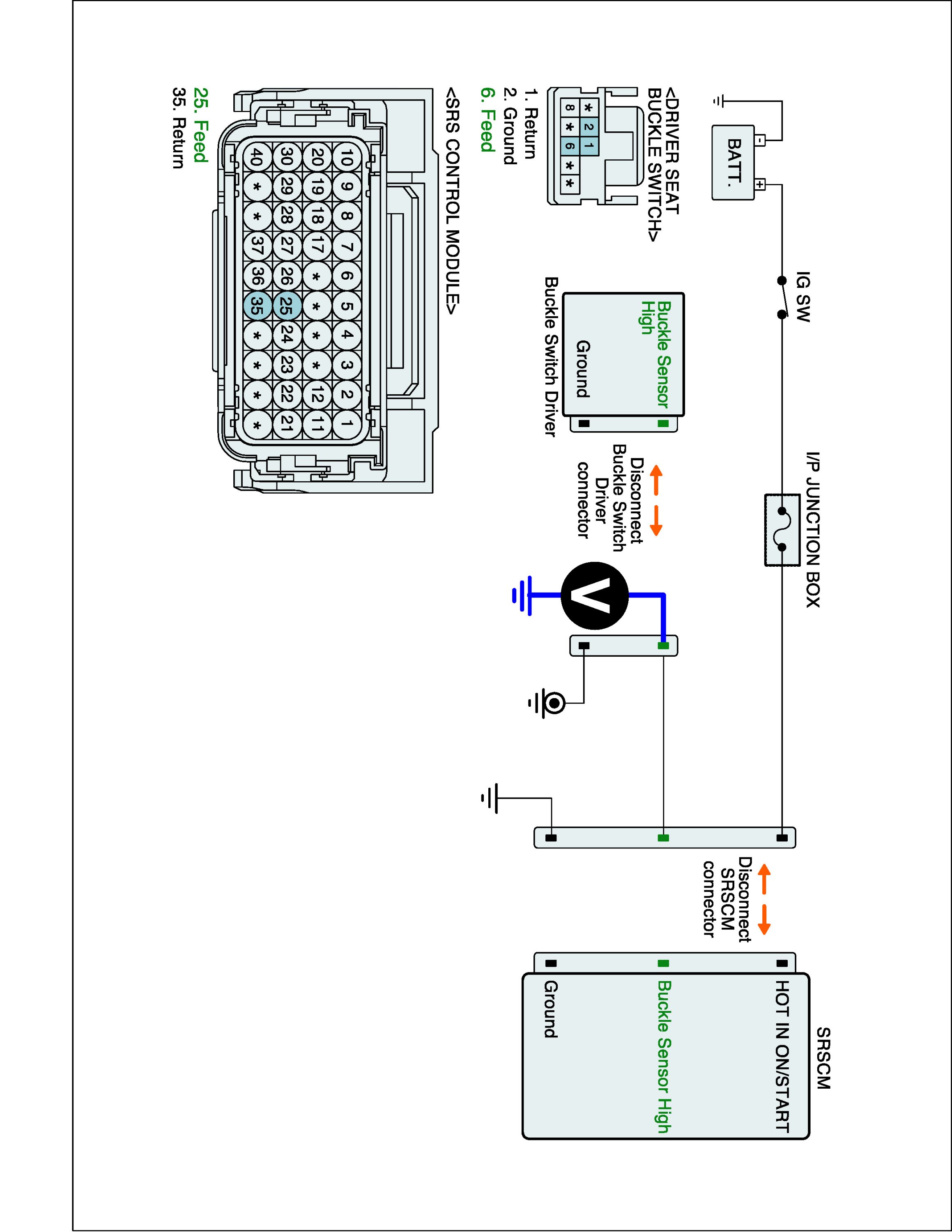 Airbag Control - B1511 Buckle Switch Driver open or short to Battery - W/Harness Inspection