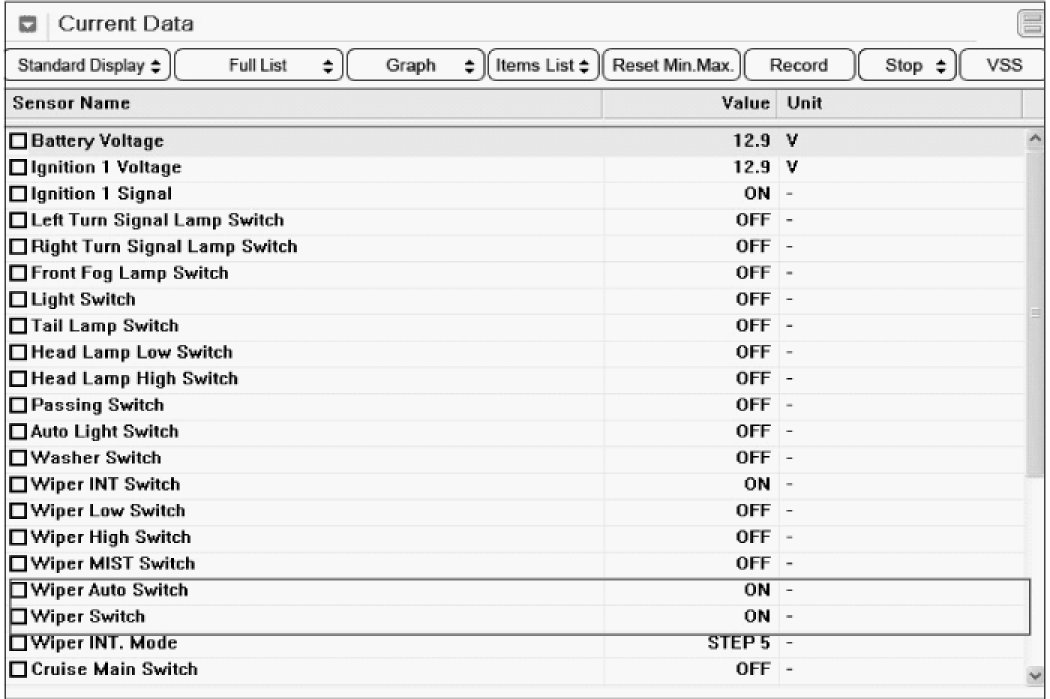 3. Check whether "Wiper Switch" is turned to "ON" when the Wiper Switch is turned on.