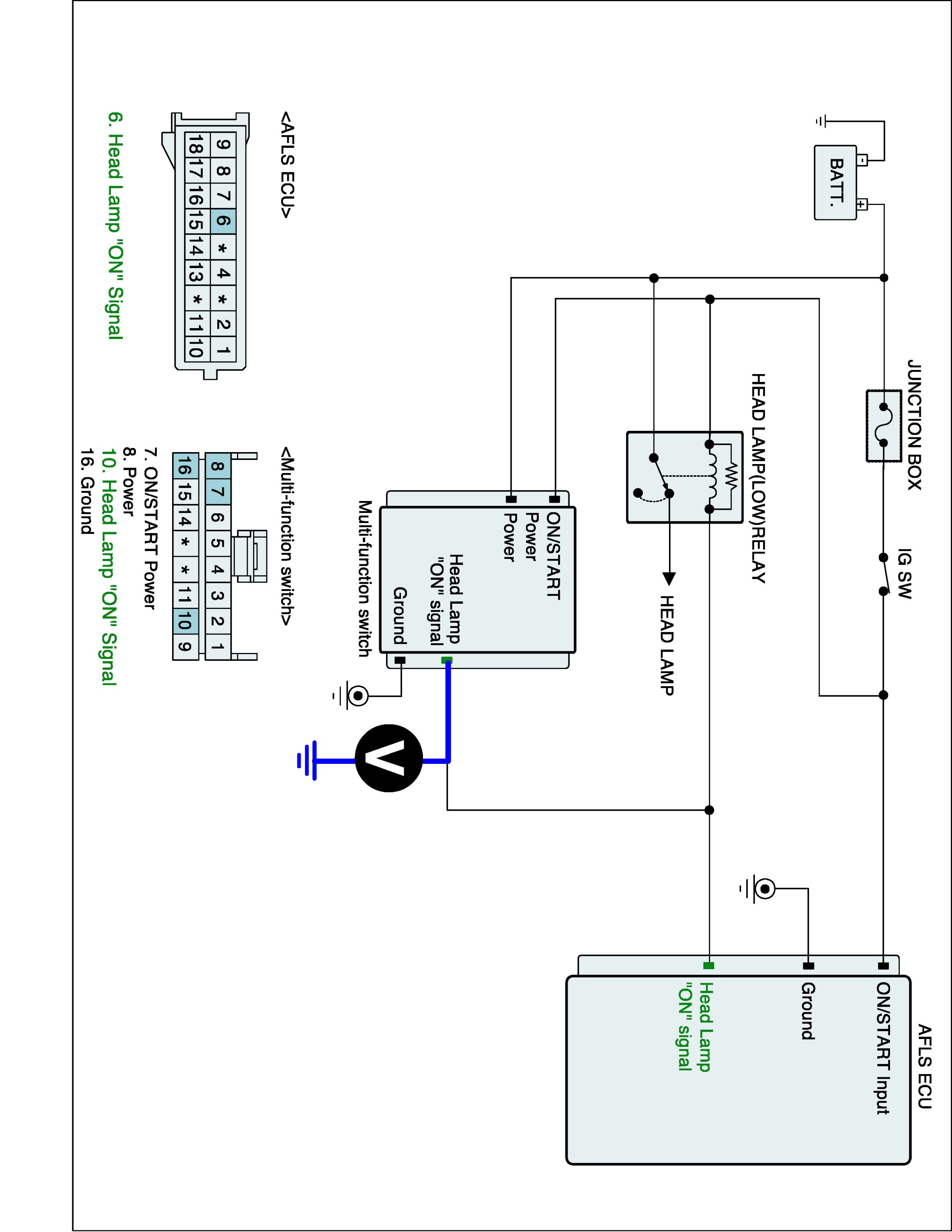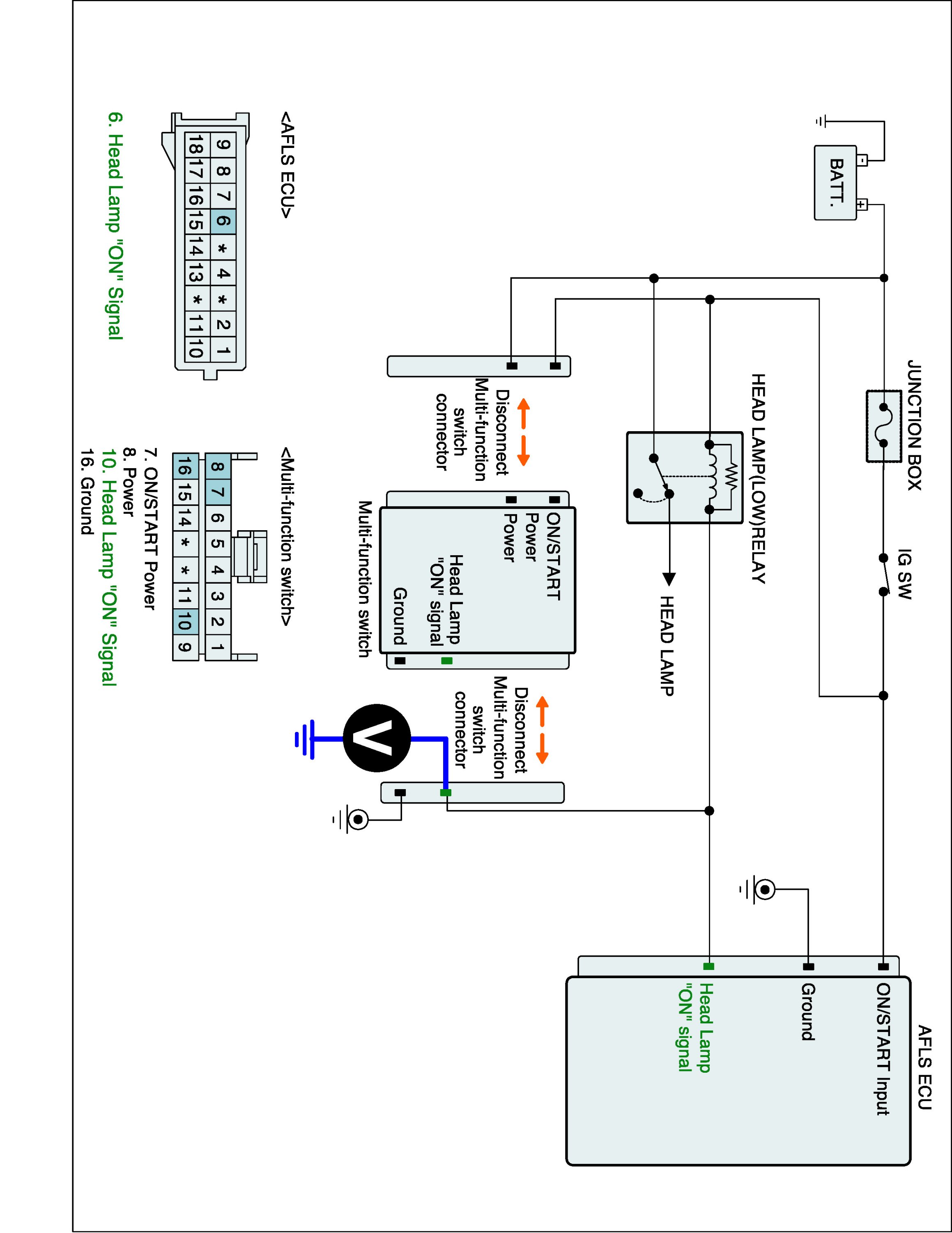 4. Measure voltage between Head lamp switch signal terminal of Multi-function switch harness connector and and chassis ground.