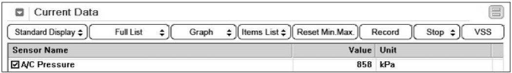 4. If no DTC, select "air conditioner pressure sensor" parameter on the engine side.