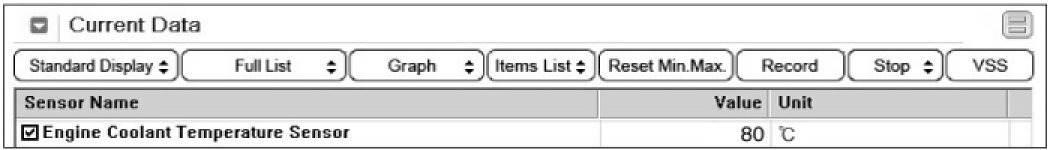 4. If no DTC, select "engine coolant temperature sensor" parameter on the engine side.