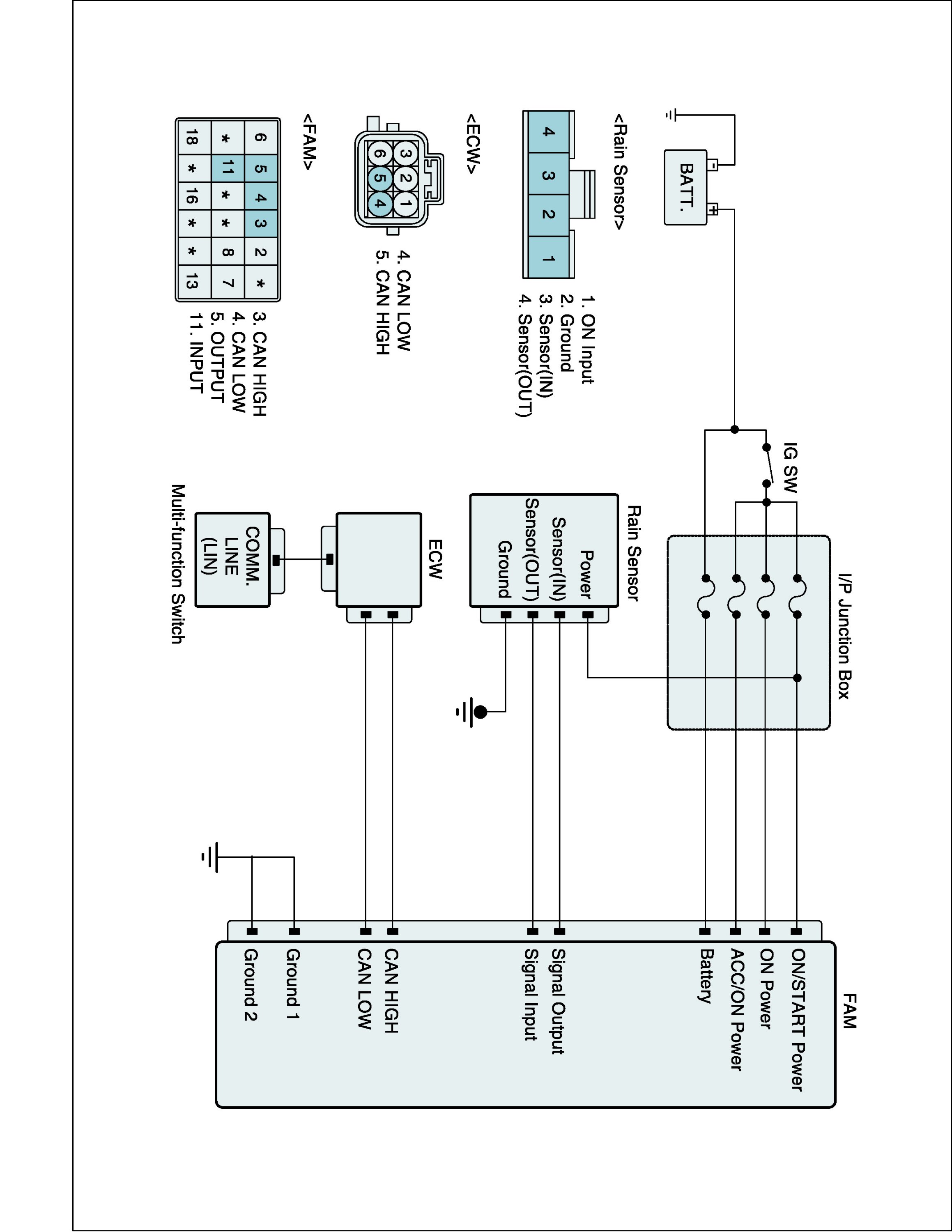 As the wiper INT switch is set at AUTO mode, combination switch transmits value of INT step to ECW by LIN communication. And, ECW communicates with FAM by CAN.