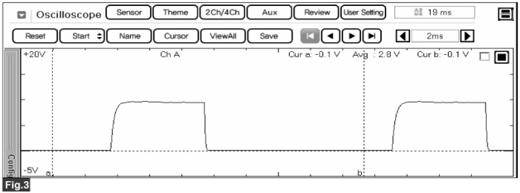 Fig.2) Signal waveform at Wiper (INT) Switch "Auto Fast"-Rain Sensor Input Signal.