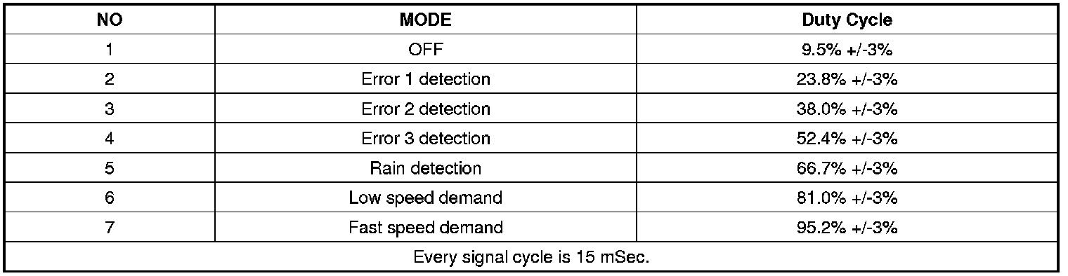 * The Rain sensor has various outputs according to each modes as below. (Duty cycle changes)