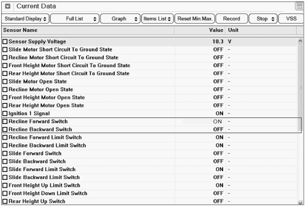 3. Check whether "Recline Switch" is turned to "ON" when the control switch is pressed. (Forward, Backward)