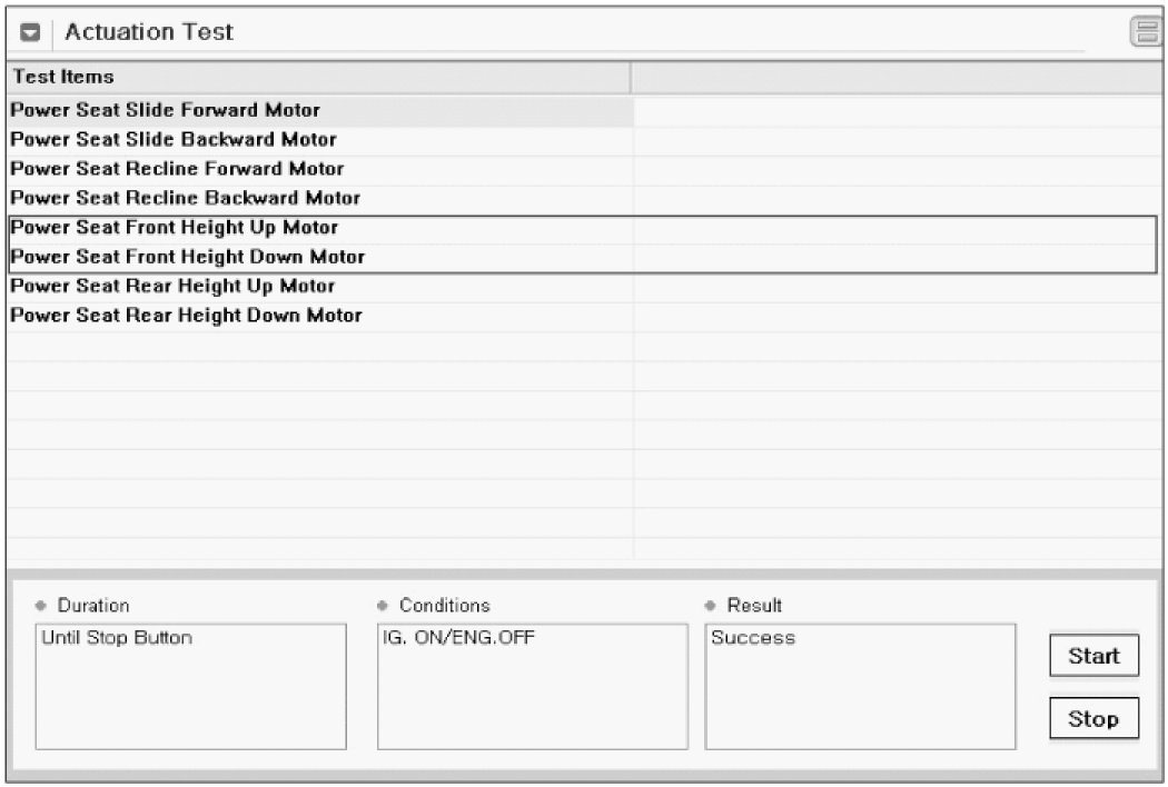 4. Execute "Front Power Seat (UP, DOWN)" test.