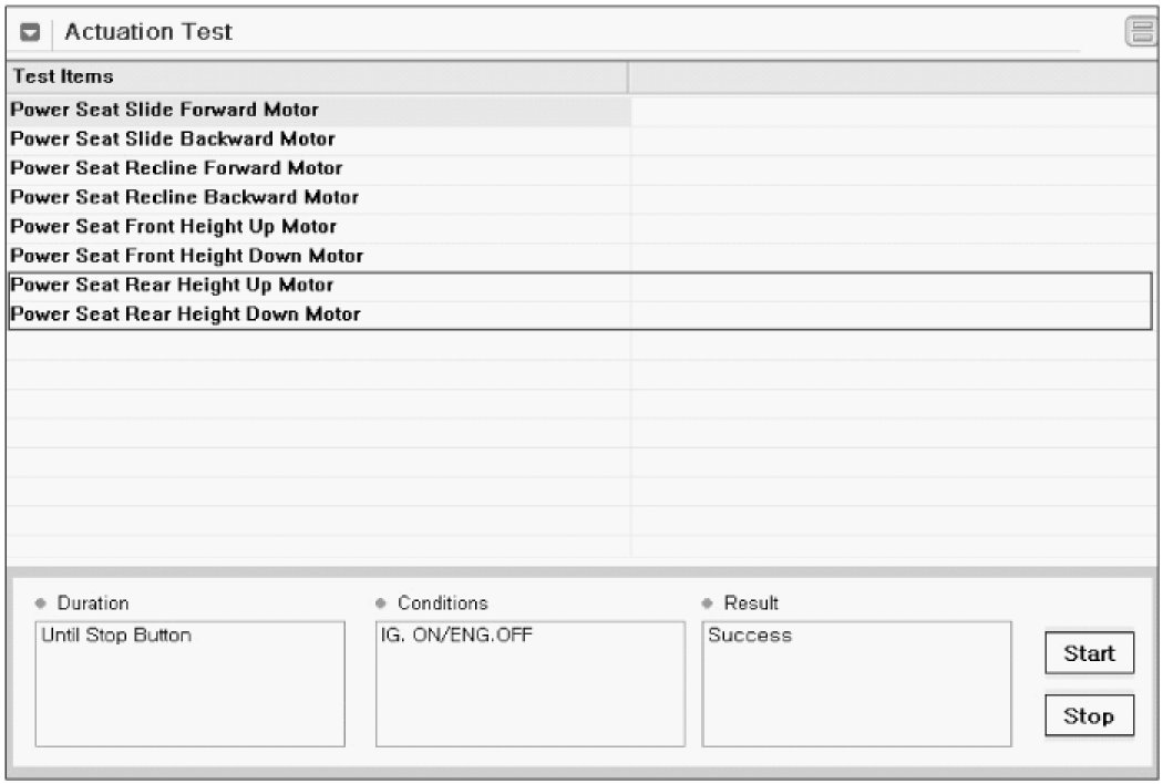 4. Execute "Rear Power Seat (UP, DOWN)" test.
