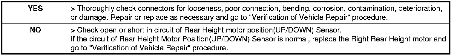 2. Measure the signal voltage of "Rear Height Sensor" with pressing the Rear Height Motor switch.