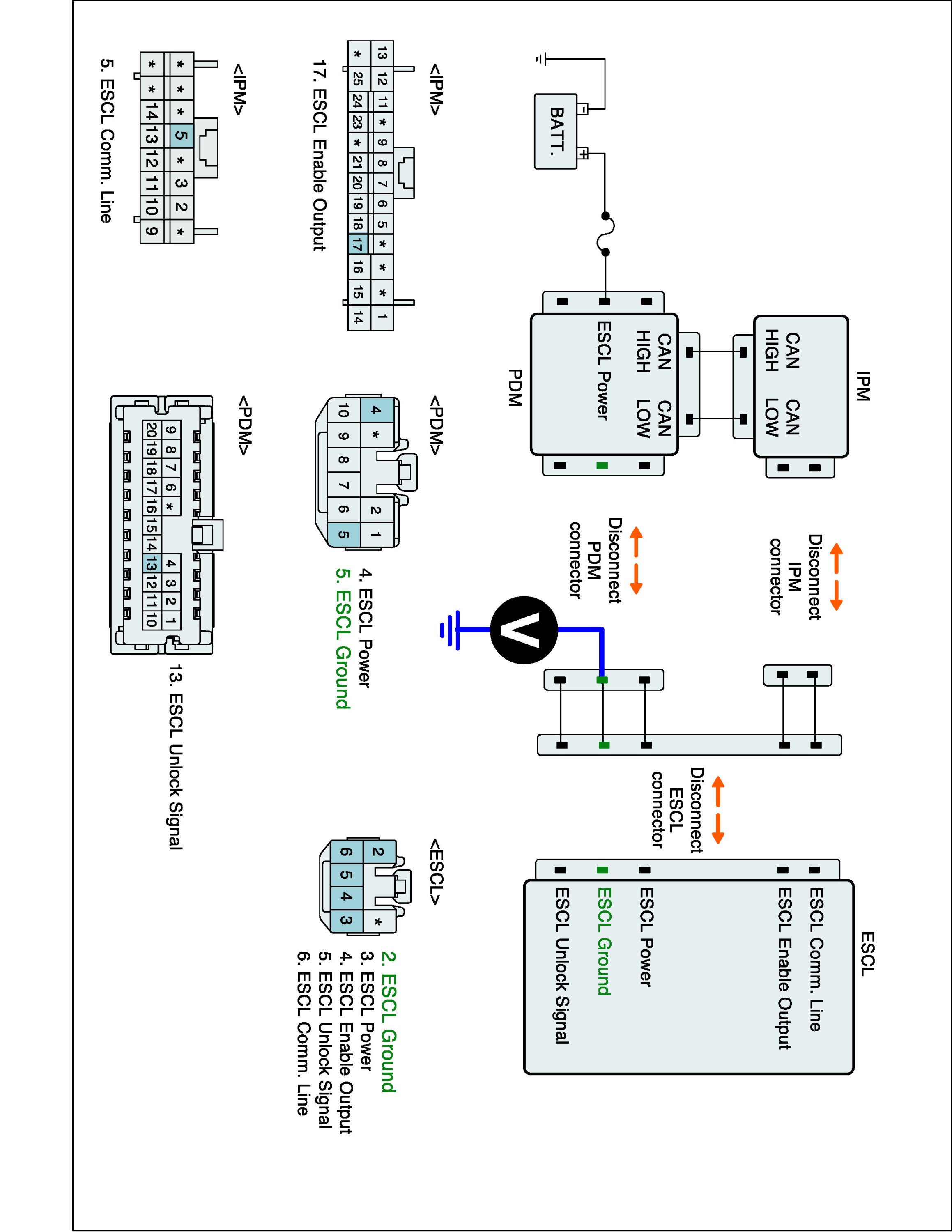 2. Disconnect the connectors of IPM, PDM, ESCL.