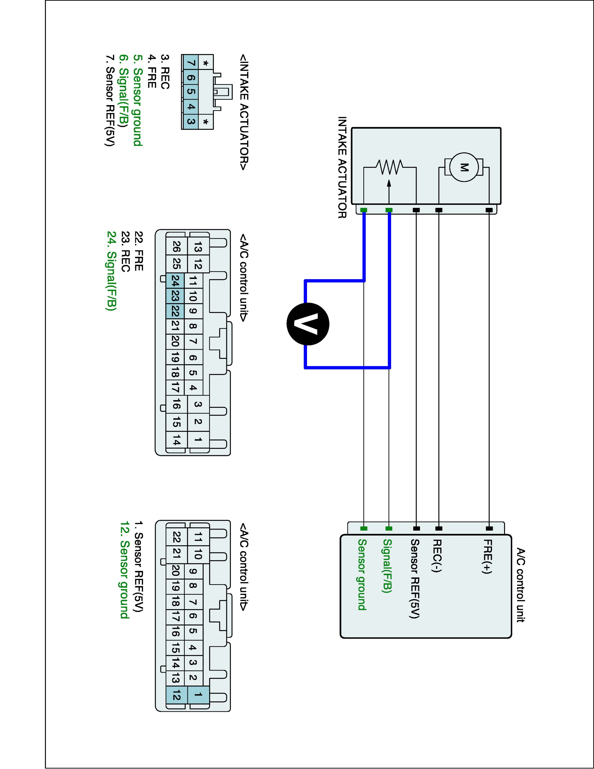 2. Disconnect Intake actuator and A/C control unit main harness connector.