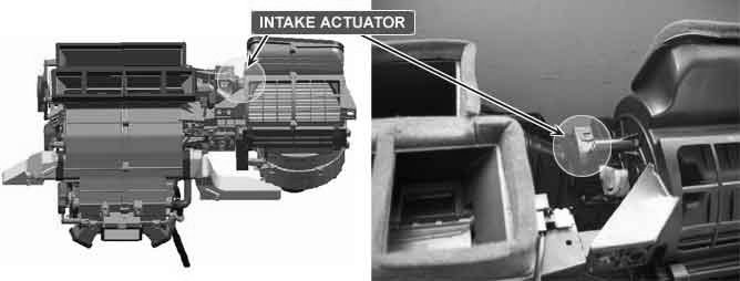 Intake door located at heater unit controls the inlet of car. It contains intake motor that changes intake door position and potentiometer that monitors position of intake door. When driver operates the intake switch, ECU receives mode signal from intake switch and operates intake door motor to turn intake door to intended position. (with FRE mode signal, intake door is closed and with REC mode signal, intake door is opened)In operation, potentiometer delivers intake door position transformed into voltage value to A/C ECU.