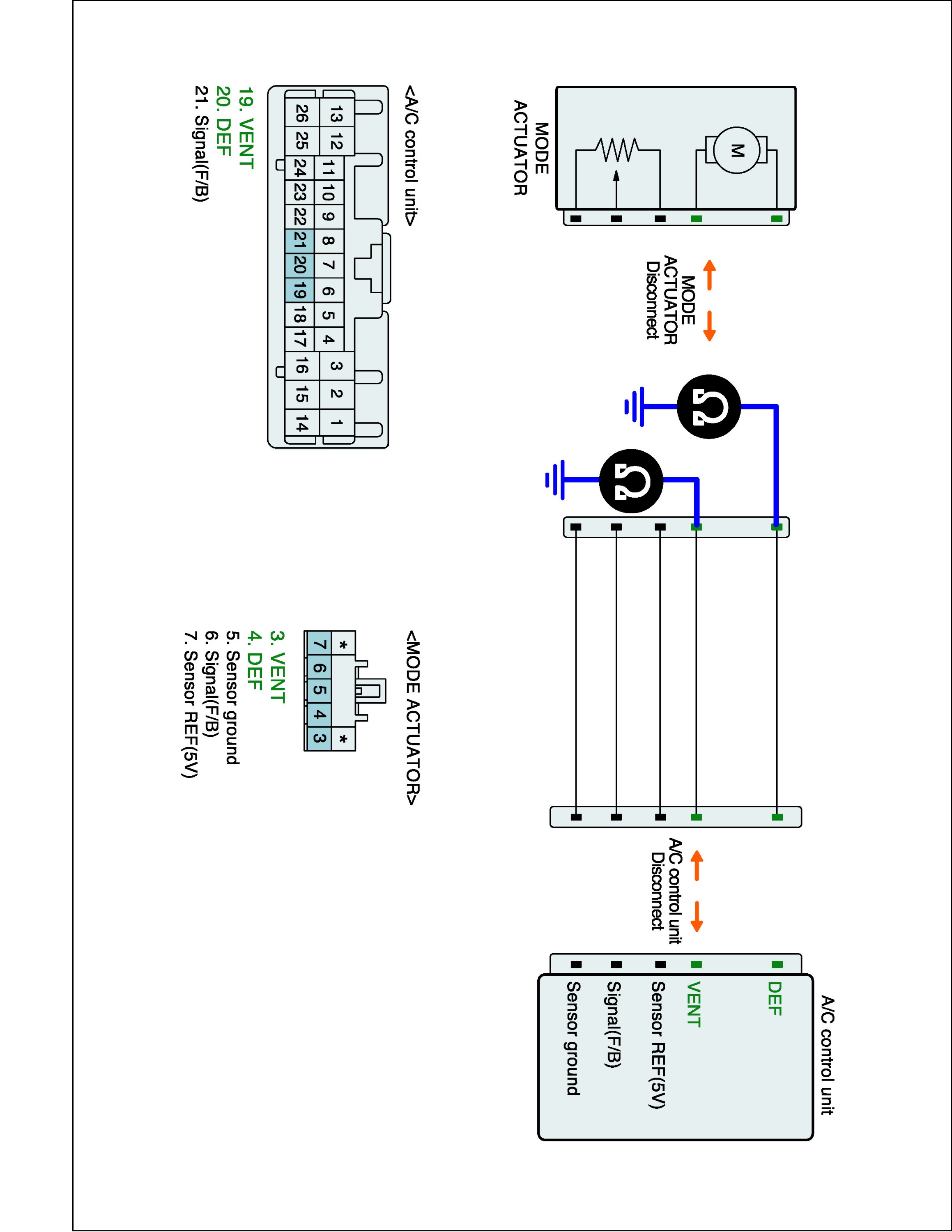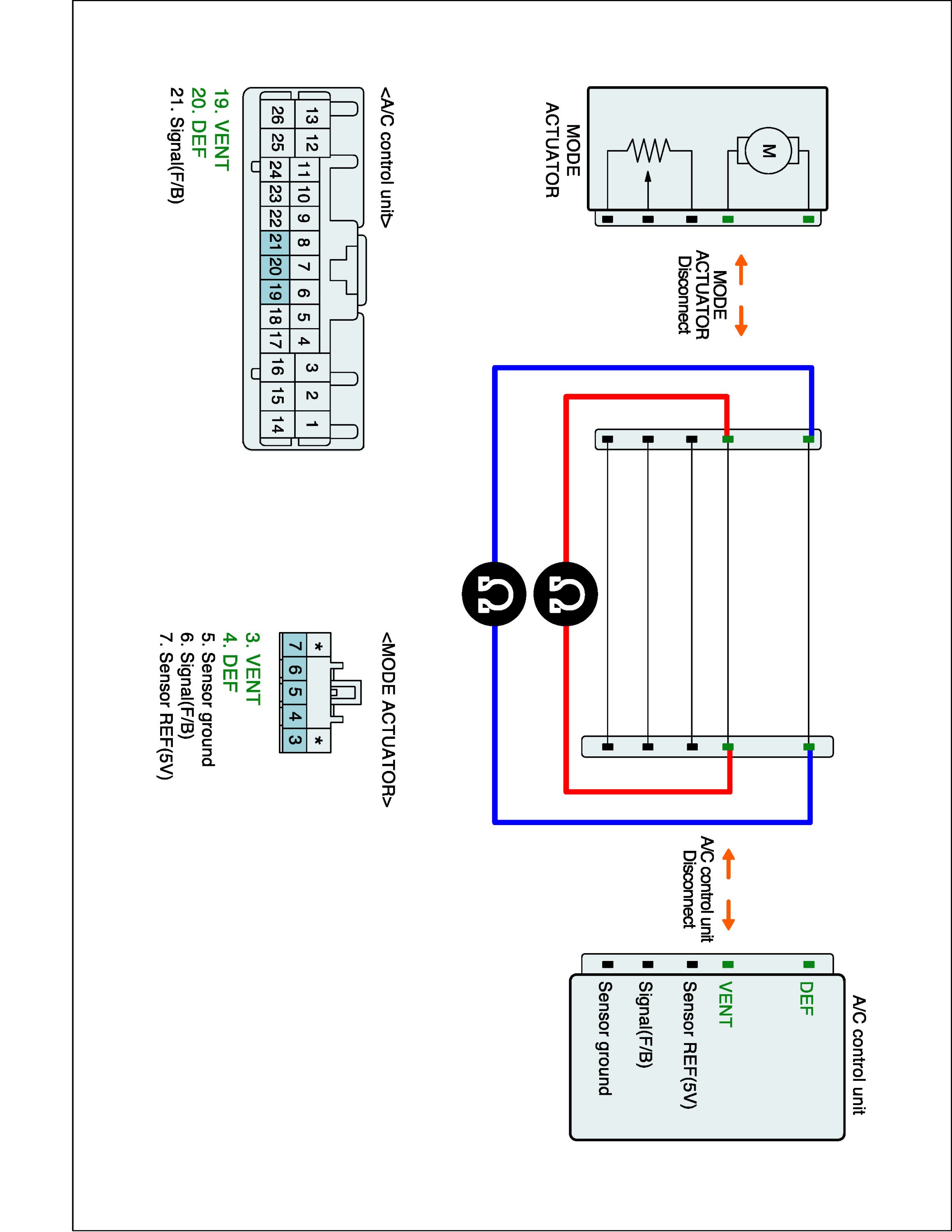 2. Disconnect Driver Direction actuator and A/C control unit main harness connector.