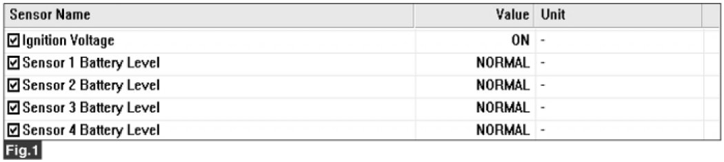 4. Monitor the "BATTERY VOLTAGE" of TPMS sensor on the scantool.