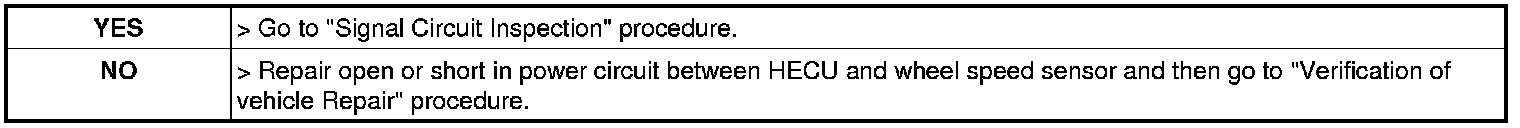 2. Measure voltage between power terminal of the wheel speed sensor harness connector and chassis ground.