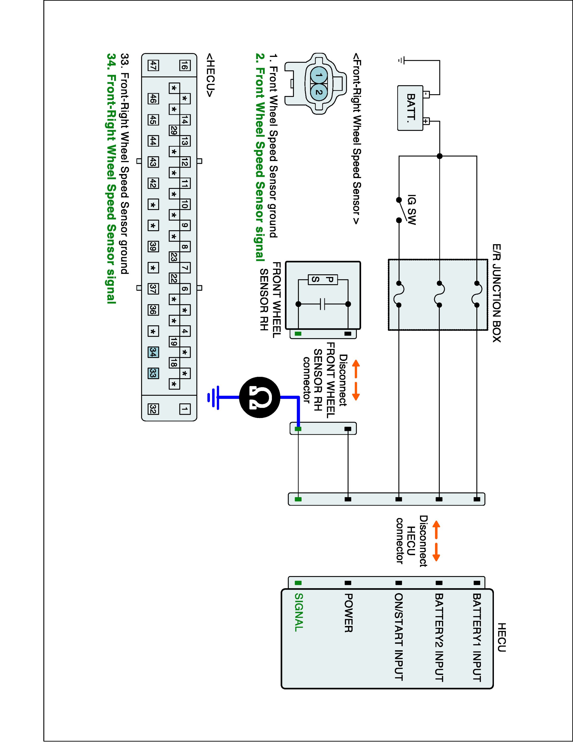 2. Disconnect wheel speed sensor connector and HECU connector.