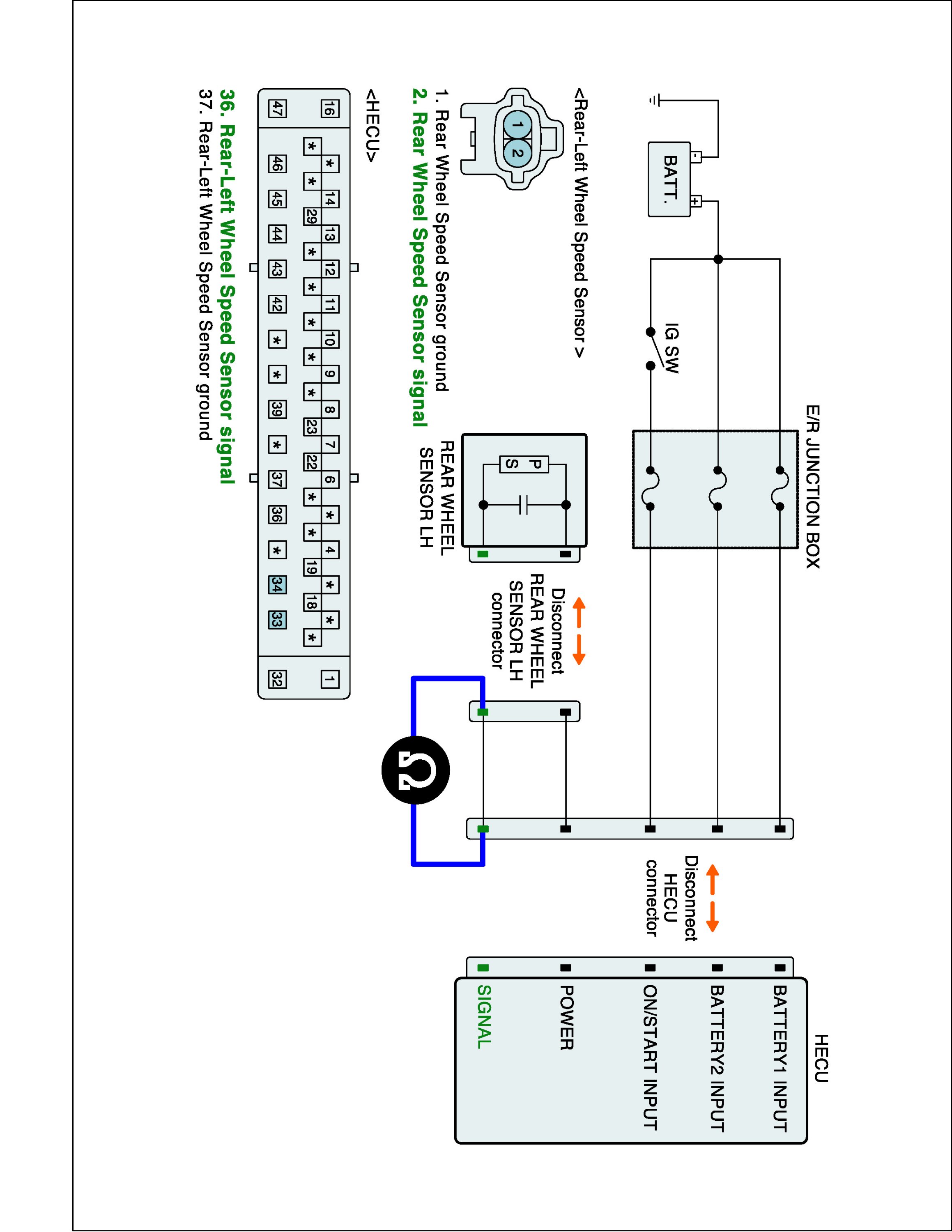 2. Disconnect wheel speed sensor connector and HECU connector.