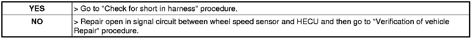3. Measure resistance between signal terminal of wheel speed sensor harness connector and signal terminal of HECU harness connector.