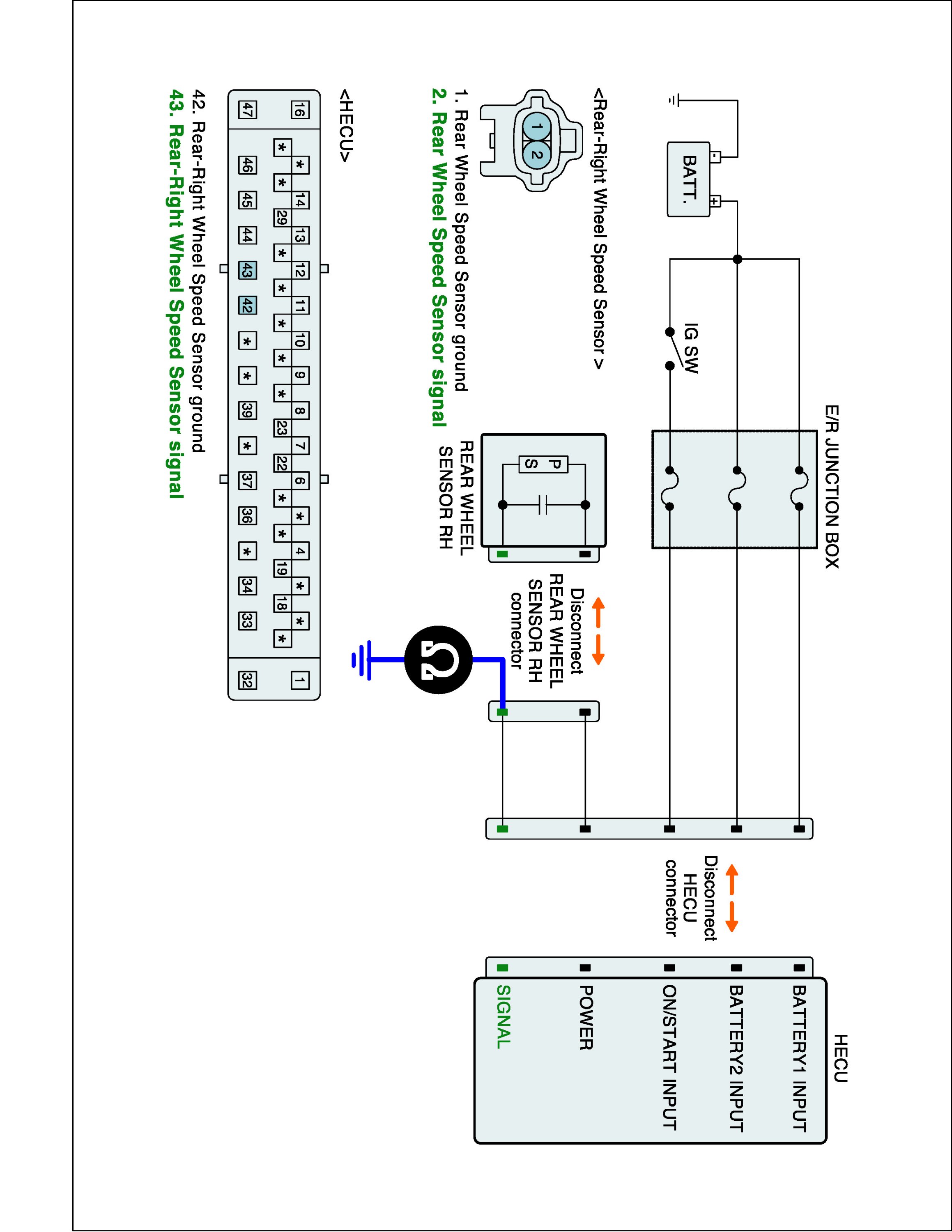2. Disconnect wheel speed sensor connector and HECU connector.