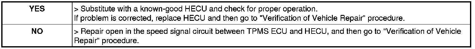 3. Measure resistance between speed signal terminal of HECU harness connector and speed signal terminal of TPMS ECU harness connector.
