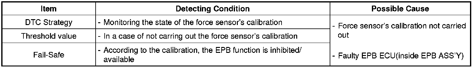 When the force sensor's calibration is not carried out, the EPB ECU shows this DTC and turns on the warning light on the cluster.