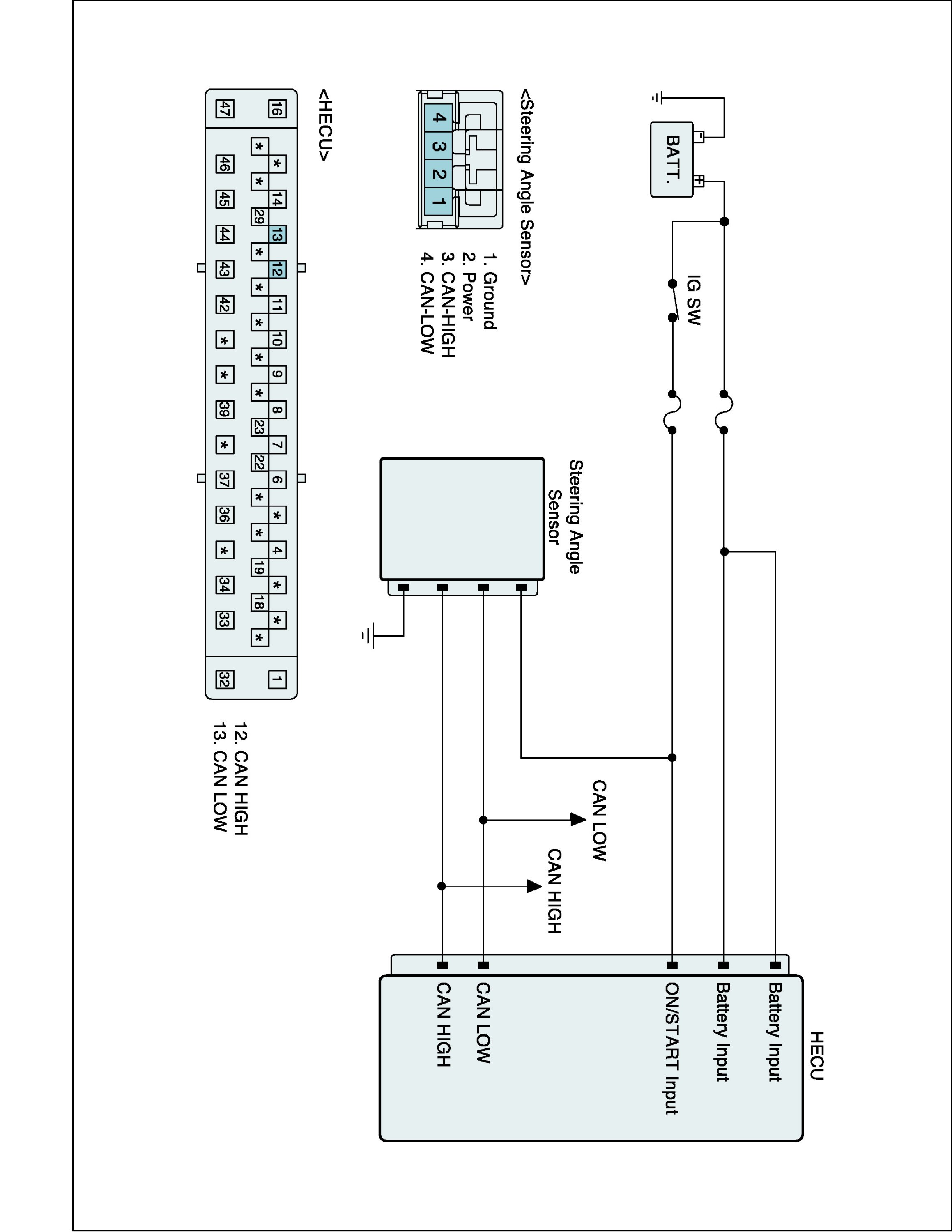 The HECU monitors the signal of the steering angle sensor for a normal operation and if it is detected that there is an error in the sensor's status, this DTC is set.