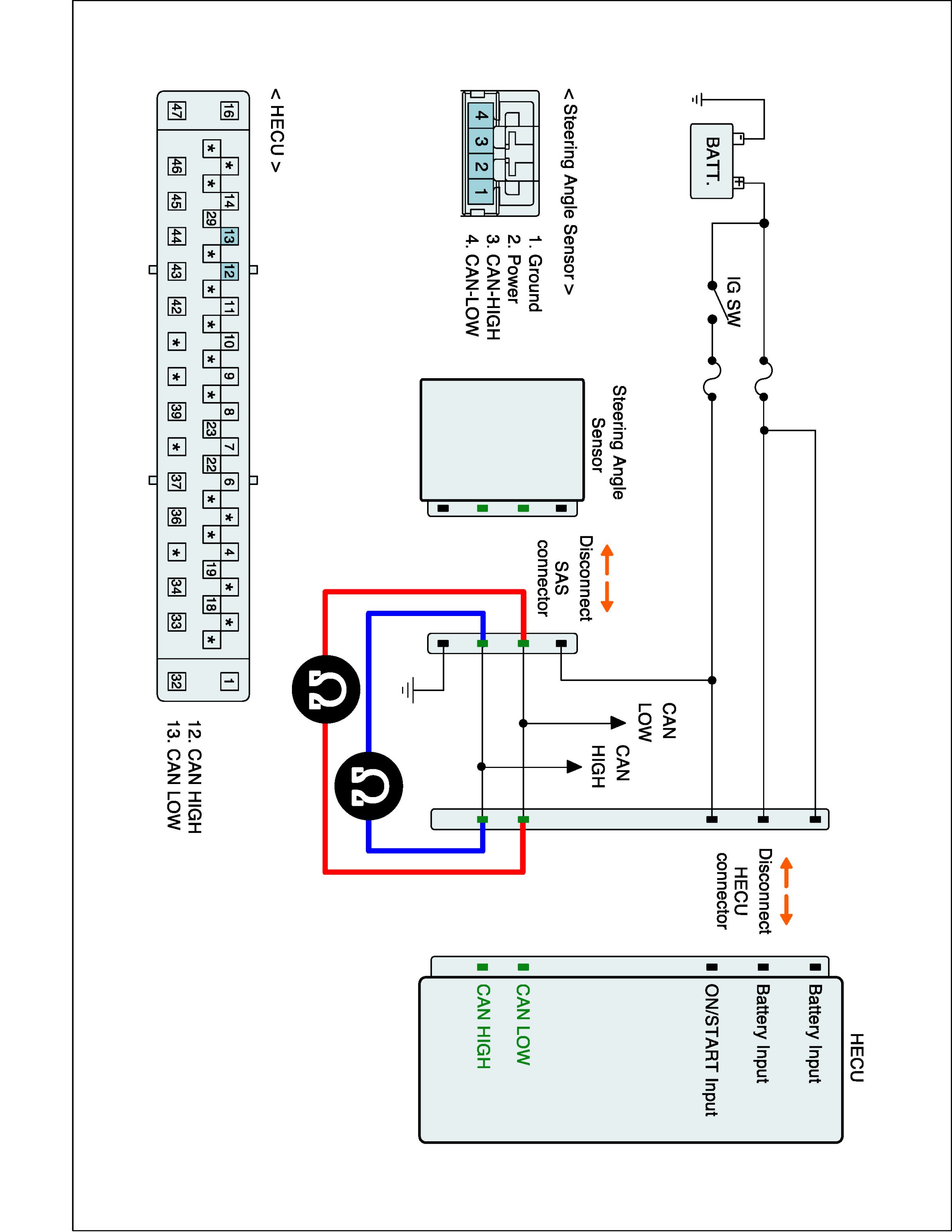 3. Measure resistance between CAN-High terminal of the steering angle sensor harness connector and CAN-High terminal of the HECU harness connector.