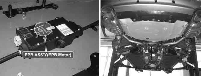 The EPB system is the shorten word of Electric Parking Brake system. This system is the parking brake device which is used instead of the conventional hand-break system. When a driver presses the EPB button, the button signal is delivered to the EPB ECU and then the EPB actuator which consists of a motor and a gears is activated. At this time, while the motor in the EPB actuator rotates, the motor pulls the EPB cable connected to the rear wheels. Among components of the EPB system, the motor is installed inside of EPB ASS'Y. When the motor gets the EPB ECU's order, it is operated and gets parking cables to be moved through gear box.