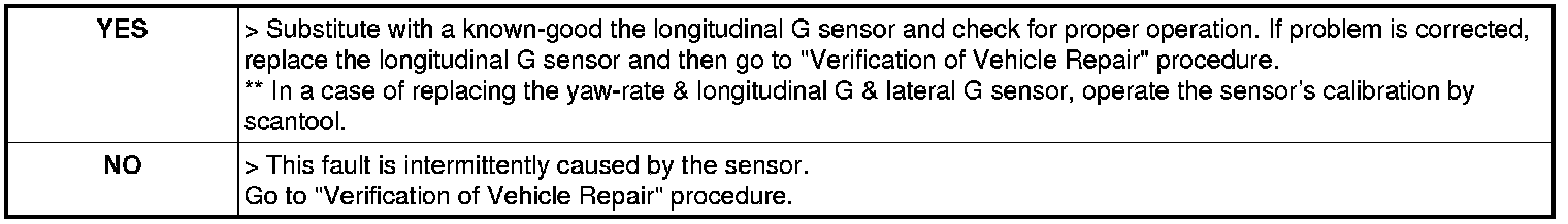 5. Check if the longitudinal acceleration value is within ±0.01G on the ground level by scantool.