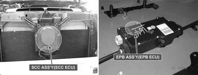 The EPB system is the shorten word of Electric Parking Brake system. This system is the parking brake device which is used instead of the conventional hand-break system. When a driver presses the EPB button, the EPB actuator is activated and then the parking brake is operated. Also, the SCC is the shorten word of Smart Cruise Control system. This system has a radar sensor on a vehicle and the SCC ECU calculates the distance between cars going in the same direction by the radar sensor. So this SCC system enables a vehicle to drive with maintaining the constant distance from the car ahead or at a constant vehicle speed.