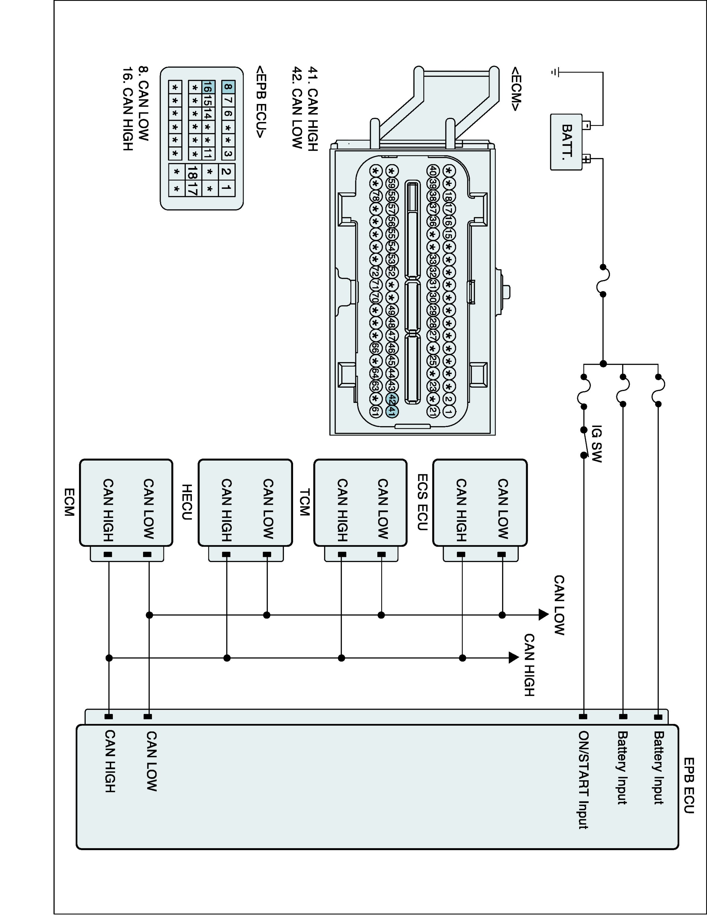 The EPB system is the shorten word of Electric Parking Brake system. This system is the parking brake device which is used instead of the conventional hand-break system. When a driver presses the EPB button, the button signal is delivered to the EPB ECU and then the EPB actuator which consists of a motor and a gears is activated. At this time, while the motor in the EPB actuator rotates, the motor pulls the EPB cable connected to the rear wheels. The EPB ECU needs various different signals from many sensors or other control modules. These signals are delivered to the EPB ECU through CAN communication line.