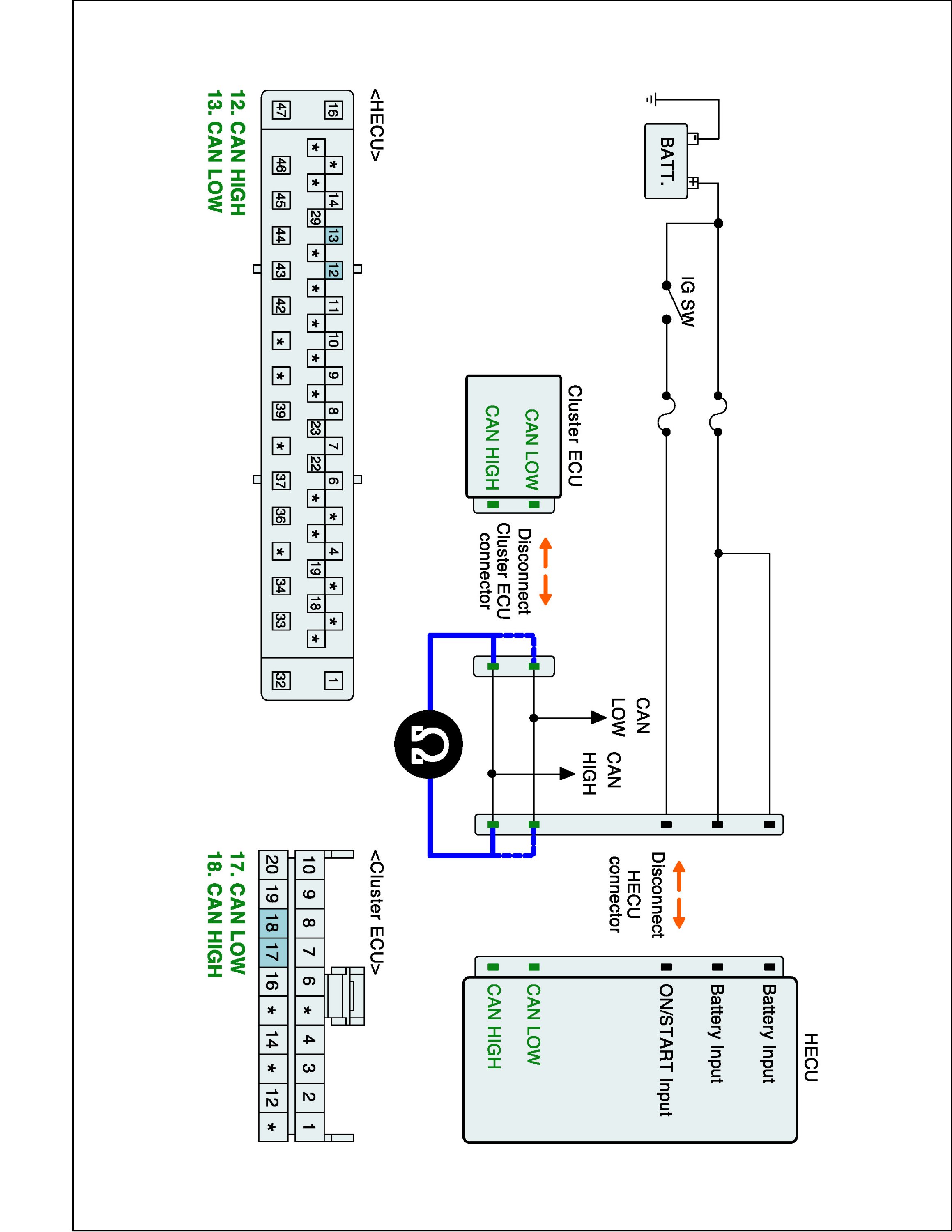 2. Disconnect Cluster ECU connector and HECU connector.