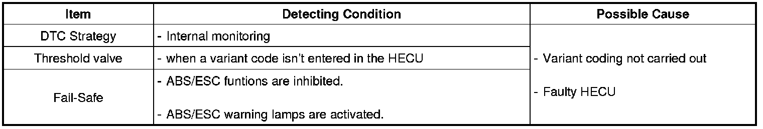 The HECU checks variant code and if an inappropriate variant code or no variant code is detected, this DTC is set.