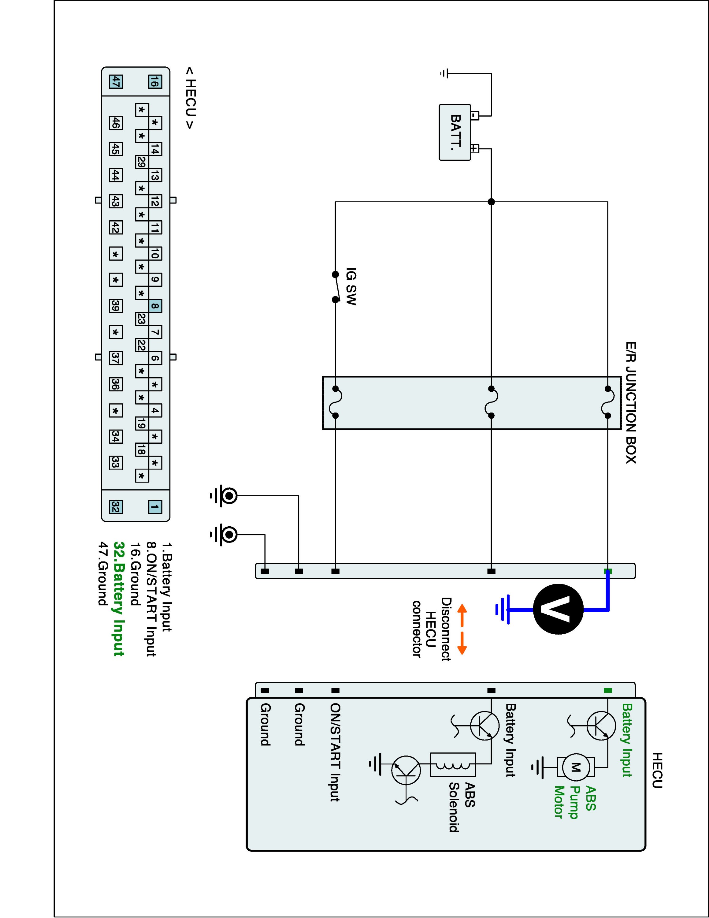 2. Measure voltage between power terminal of the HECU harness connector and chassis ground.