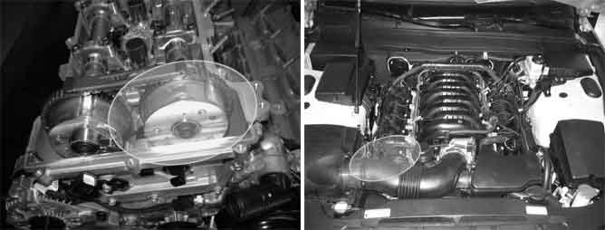 The CVVT (Continuously Variable Valve Timing) system is installed to the chain sprocket of the intake camshaft. This system controls the intake camshaft to provide the optimal valve timing for every driving condition. The ECM controls the Oil Control Valve (OCV), based on the signals output from mass air flow, throttle position and engine coolant temperature. The CVVT controller regulates the intake camshaft angle using oil pressure through the OCV. As result, the relative position between the camshaft and the crankshaft becomes optimal, and the engine torque improves, fuel economy improves, exhaust emissions decrease under overall driving conditions.