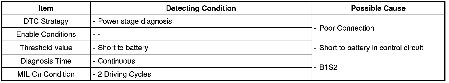 When ECM detects short to power in the heater control circuit (B1S2), ECM sets DTC P0038.