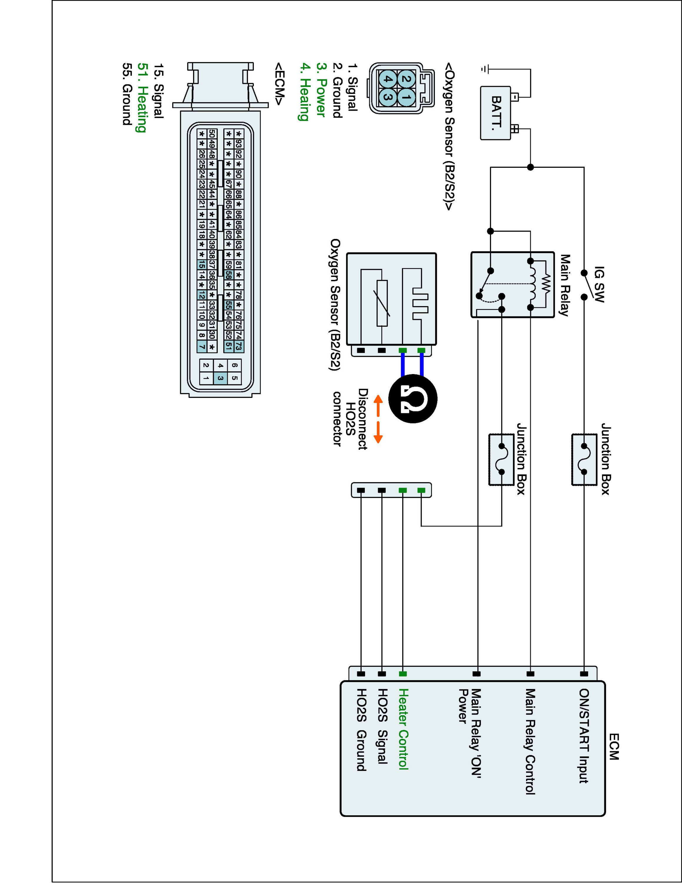 1. IG "OFF" and disconnect HO2S (B2/S2) connector
