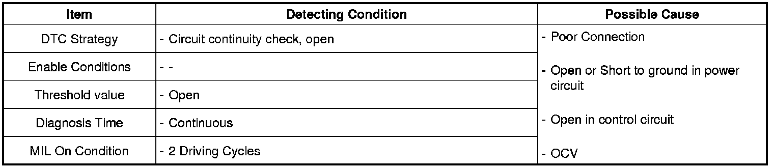 When ECM detects open in the OCV (Bank 1-IN) control circuit, ECM sets DTC P0075.