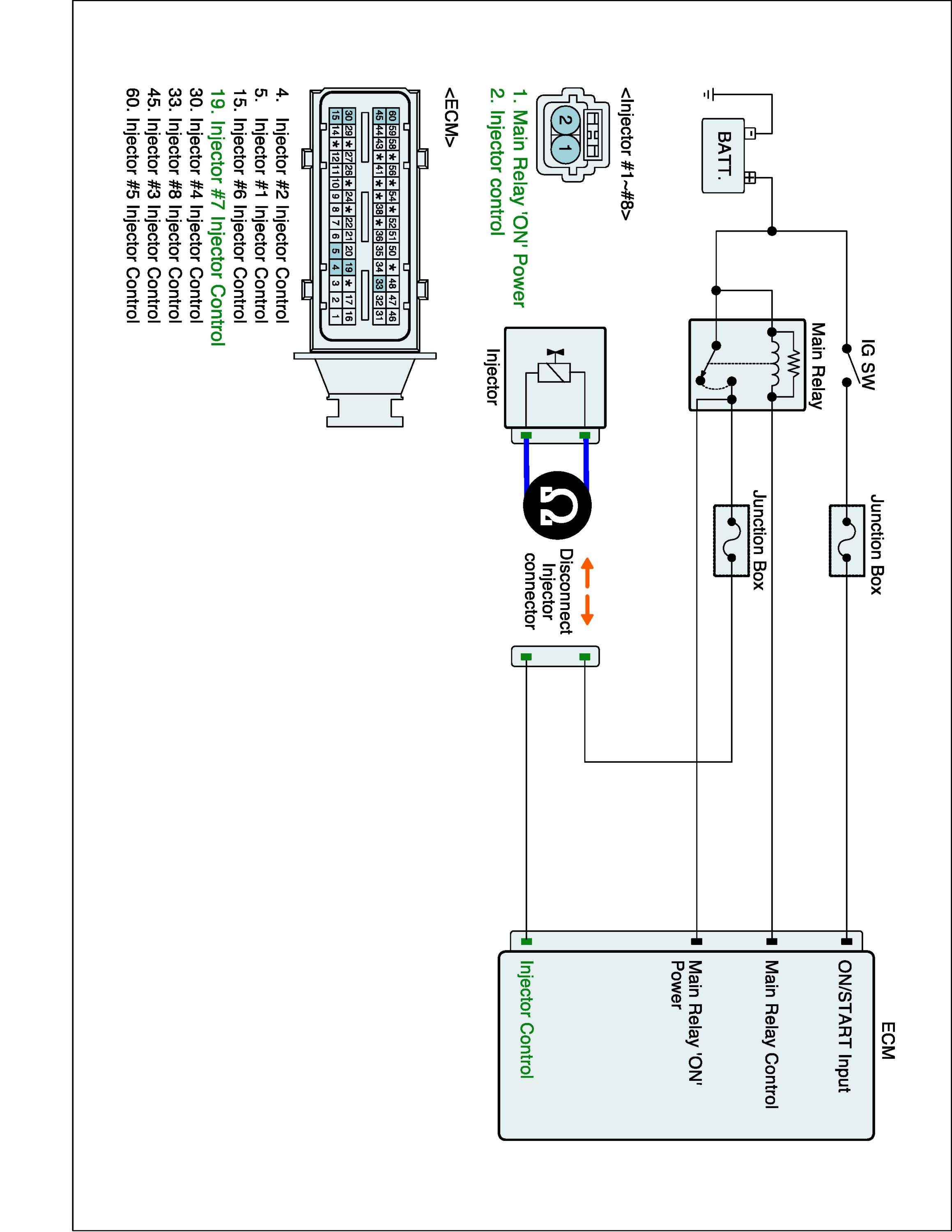 1. IG "OFF" and disconnect injector connector.