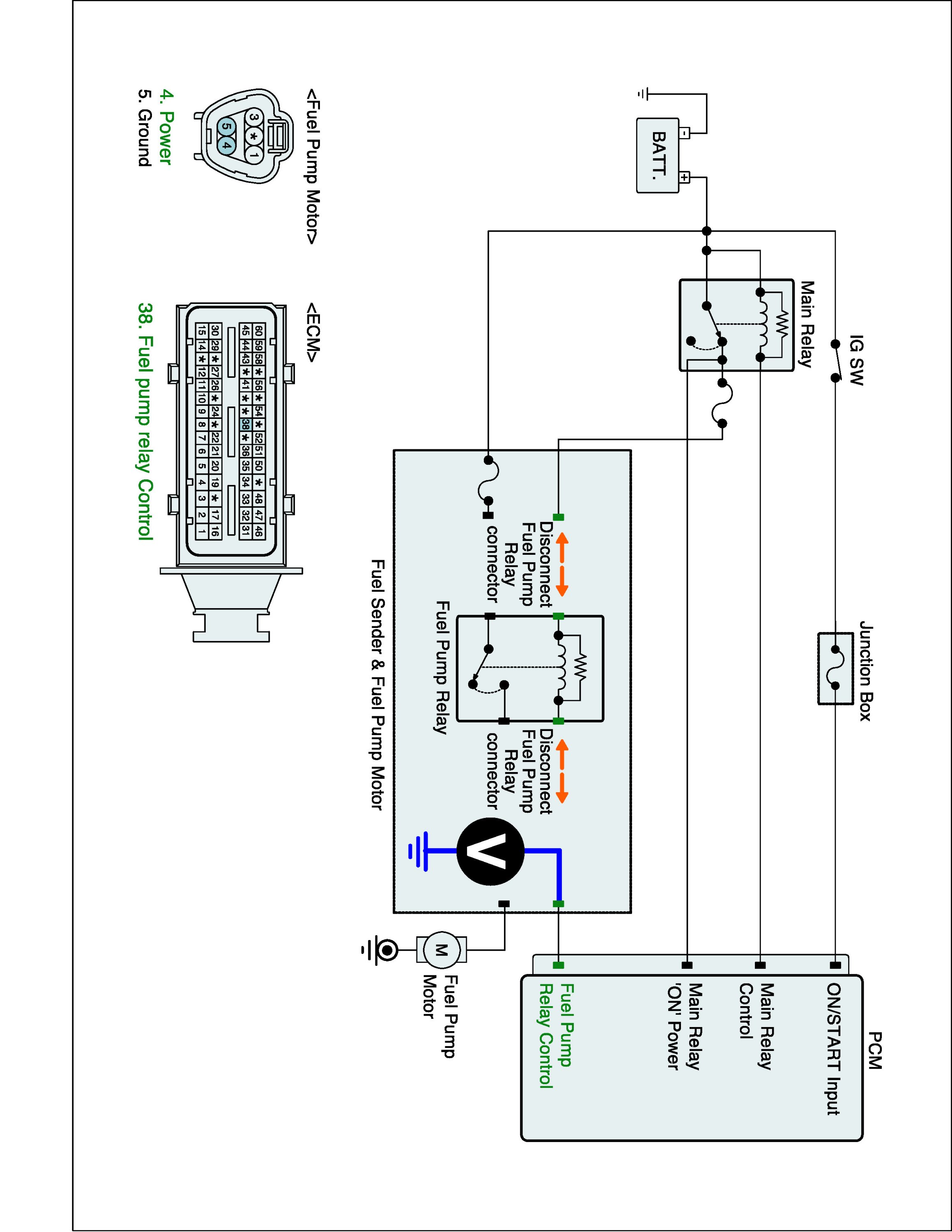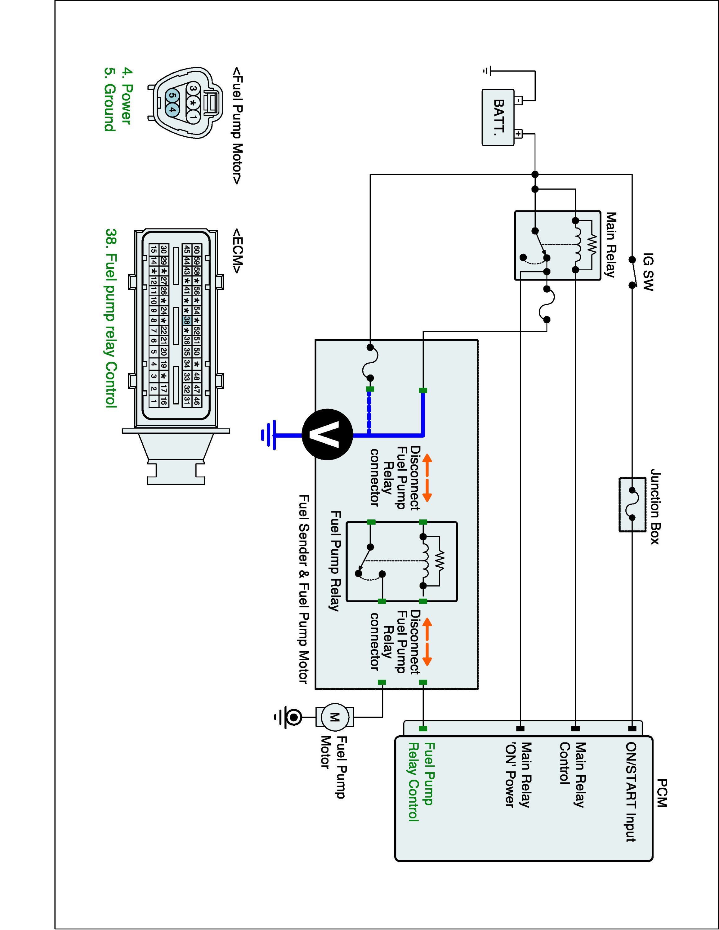 1. IG "OFF" and disconnect fuel pump relay connector.