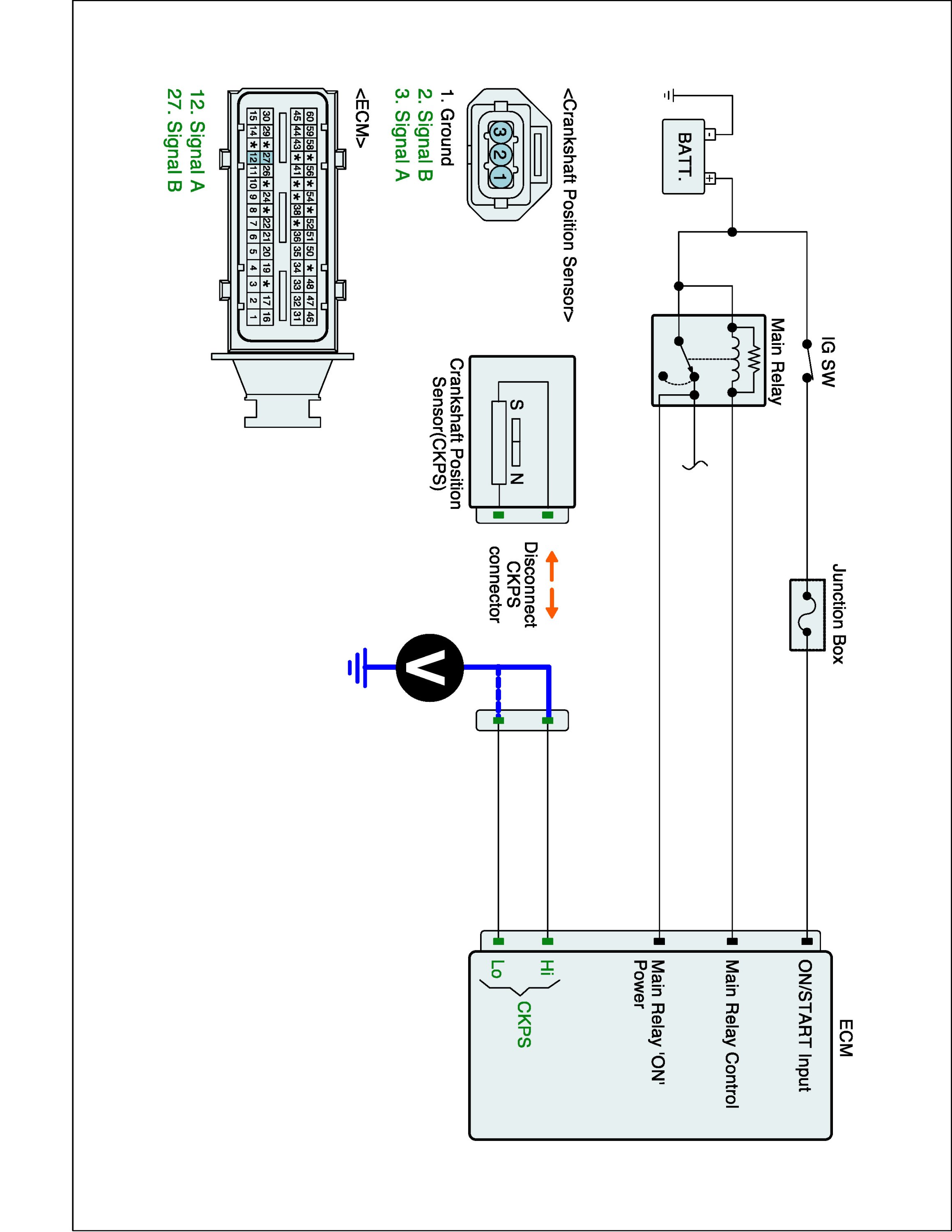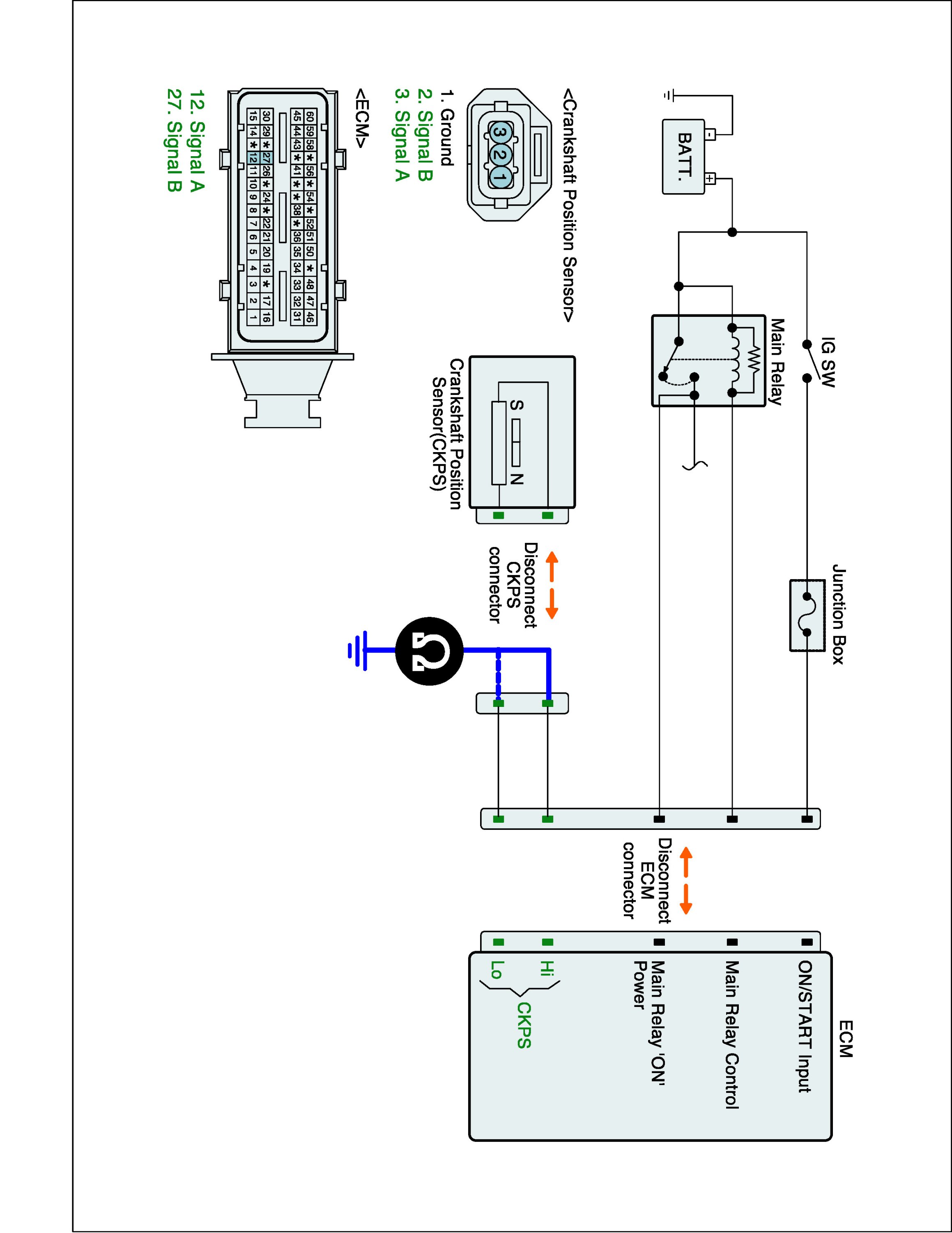 1. IG "OFF" and disconnect CKPS connector and ECM connector.