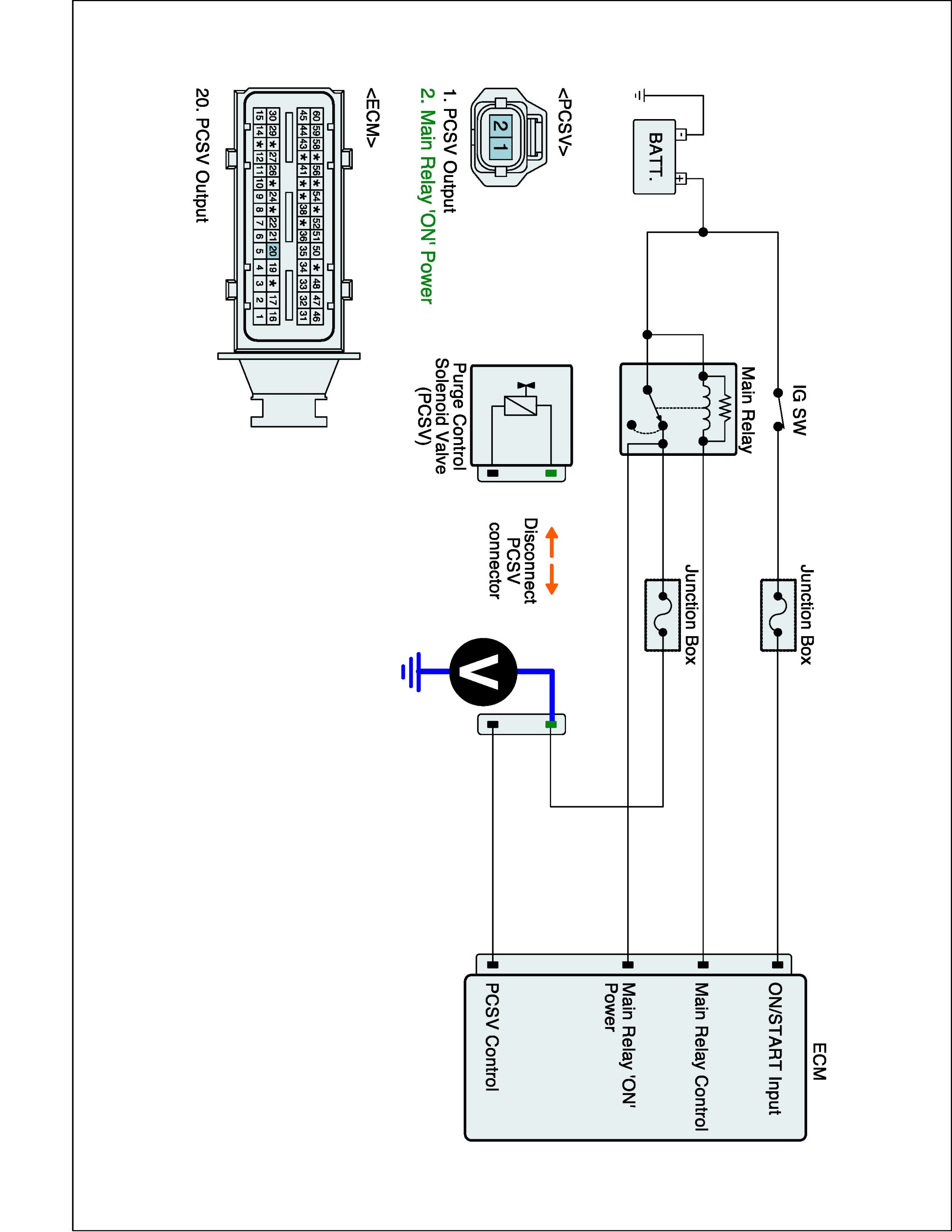 1. IG "OFF" and disconnect PCSV connector.