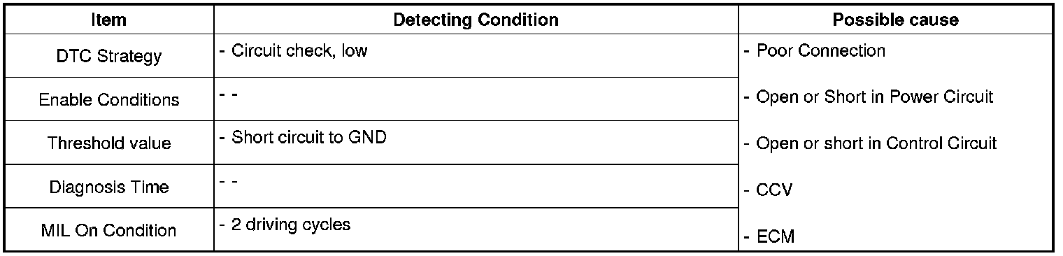 If there is Short to ground in CCV circuit, PCM sets DTC P0447.