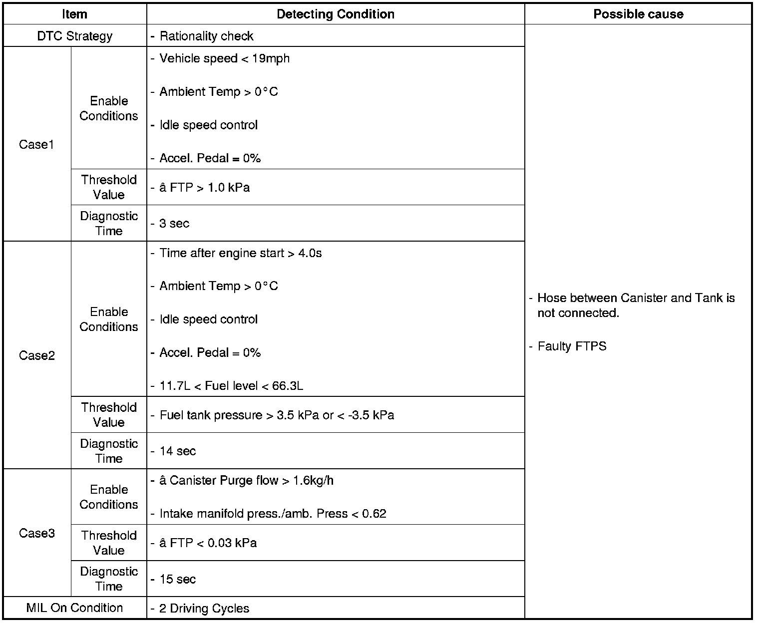 DTC Detecting Condition