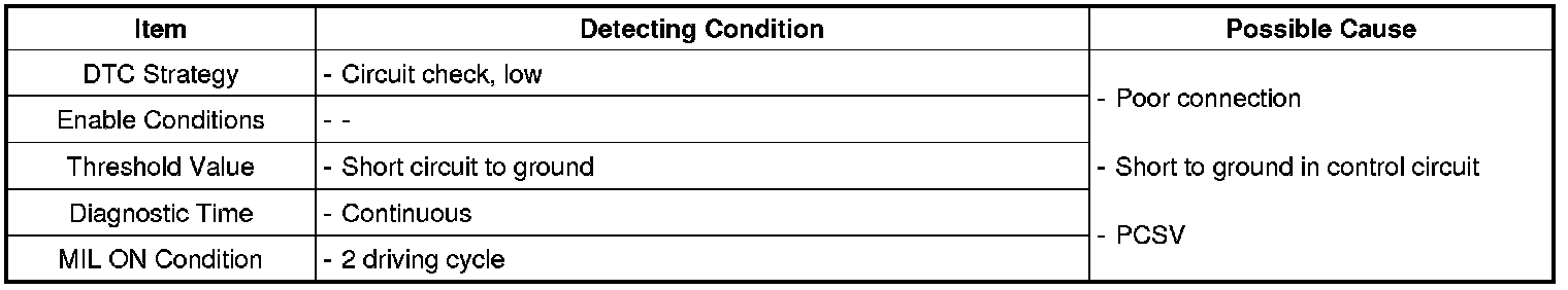 If there is Short to ground in PCSV circuit, ECM sets DTC P0458.