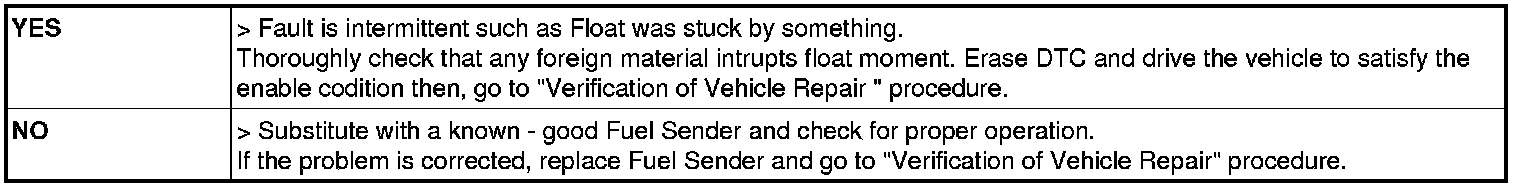 Engine Control - P0463 Fuel Level Sensor 'A' Circuit High Input - Component Inspection