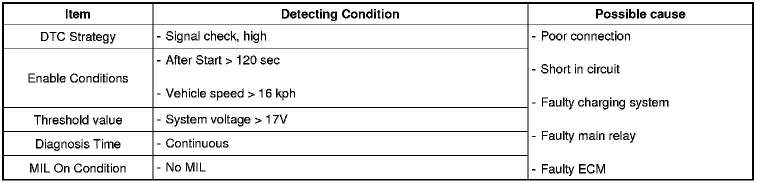 During engine running, if system voltage is above 17 V, ECM sets P0563.