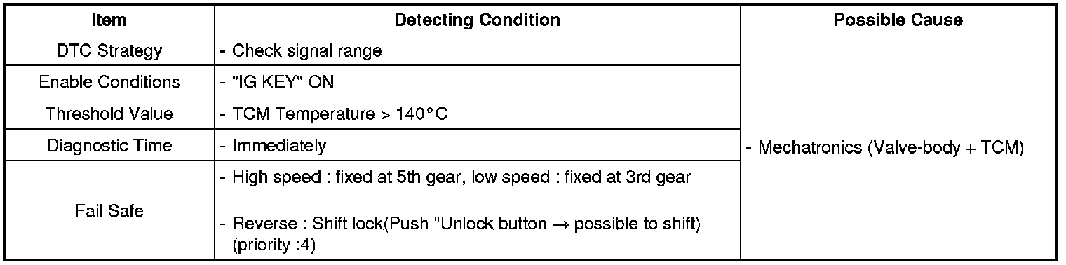 TCM installed in inside Automatic transmission with E-module. Temperature sensor detects temperature increasing for inside of TCU and prevent from abnormal operation of TCU.