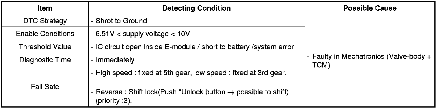 TCM set this code If detected ground short for IC circuit of Inhibitor s/w. (MIL ON : 2 driving Cycle)