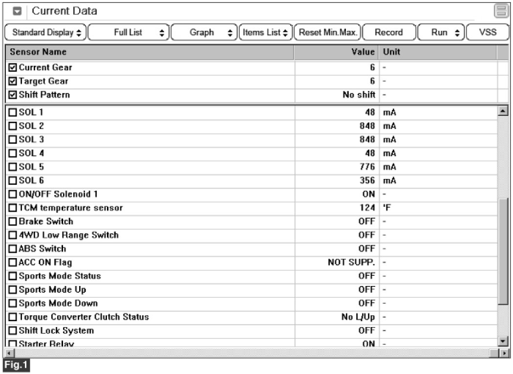 Fig 3) Solenoid operating status - D1 gear to D6 gear