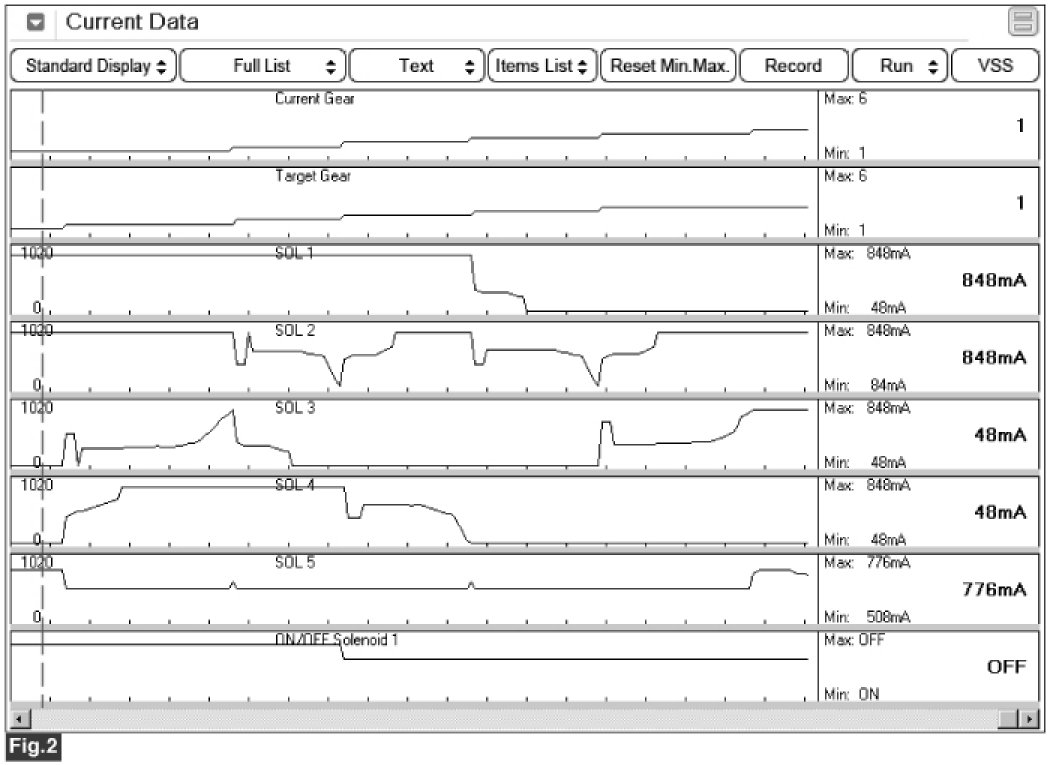 Fig 3) Solenoid operating status - start to shift